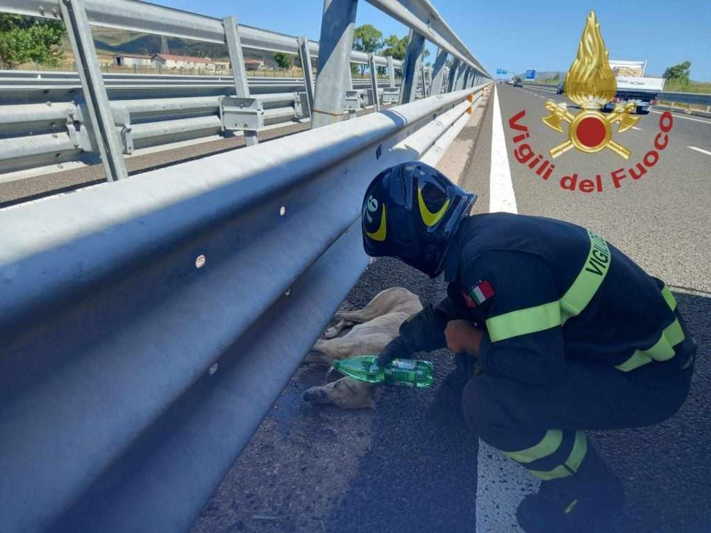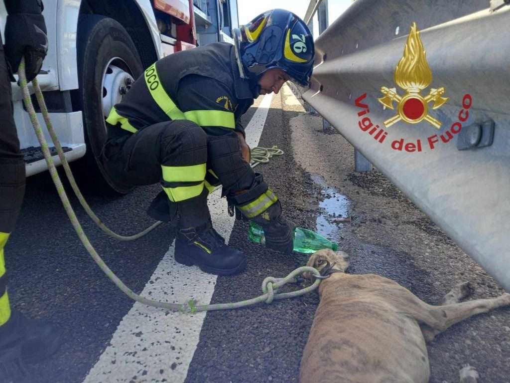 Un cane investito probabilmente da un’auto lungo la strada statale 131 è stato salvato questa mattina dai Vigili del fuoco di Sassari.