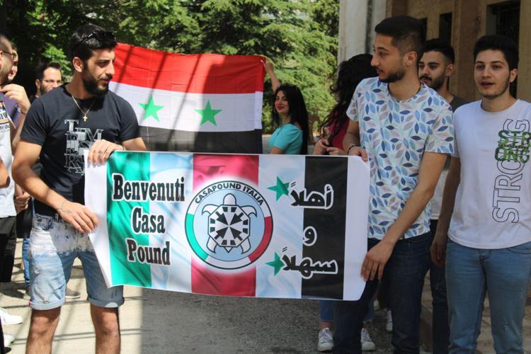 Missione in Siria per Casapound, che, già da anni impegnata in attività di volontariato e di sostegno al governo Assad, in questa occasione “ha potuto riconfermare e constatare la reciproca volontà di collaborare sul campo della cultura, del turismo e dell’educazione”.