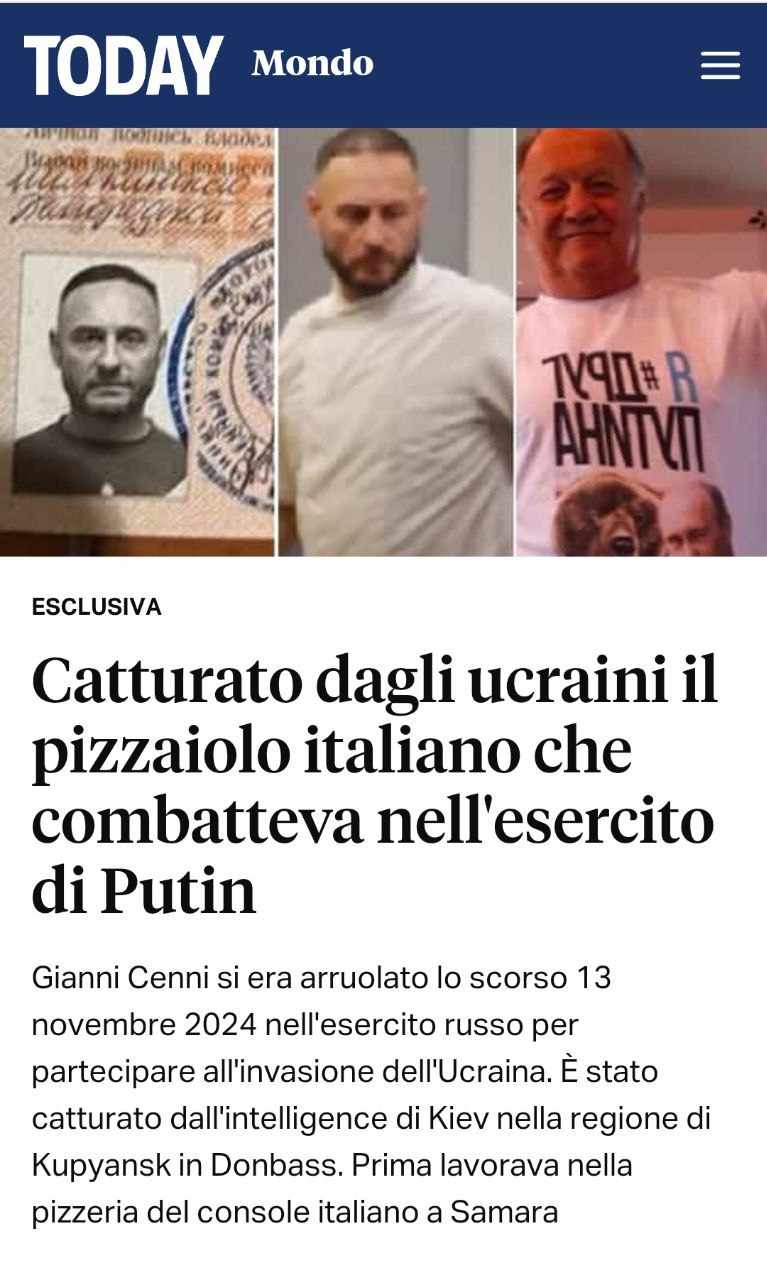Gianni Cenni, classe 1973, si era arruolato nel novembre 2024. Era stabilmente residente in Russia. In base a quanto riportano la stampa il suo sequestro è il risultato di un’operazione di ricognizione dell’ intelligence militare oltre le linee nemiche.