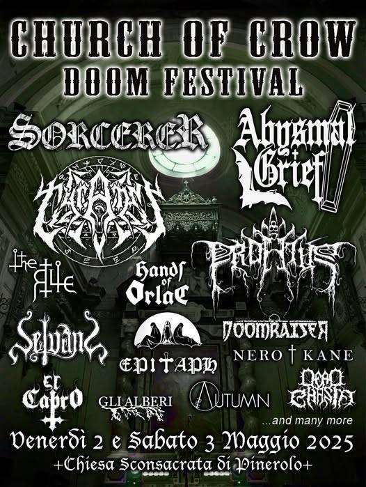 Venerdì 2 e sabato 3 maggio 2025 presso la splendida location della chiesa sconsacrata di Pinerolo, sita in via San Giuseppe 50, si svolgerà la terza edizione del Church Of Crown Doom Festival, ormai un appuntamento fisso anche per i fans che arrivano da tutta Europa.