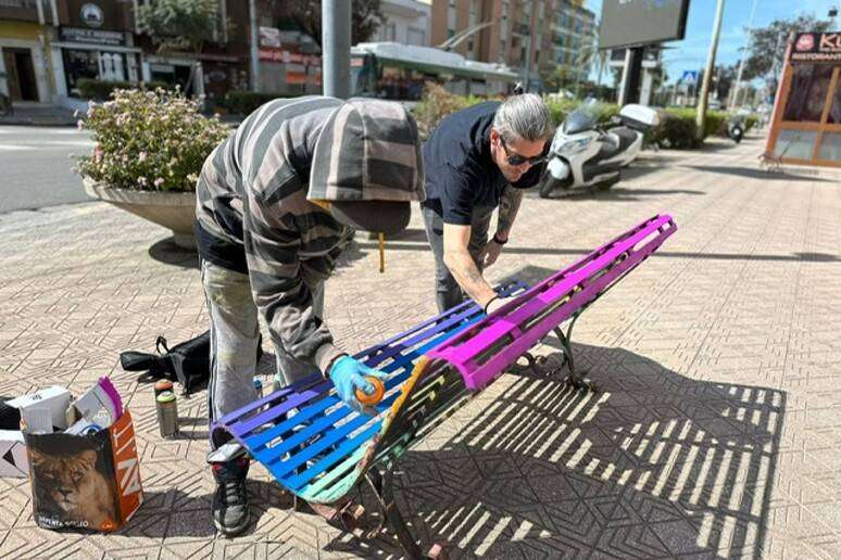 Cinque panchine contro il razzismo a Quartu, in viale Colombo. Sono state decorate con i colori dell’arcobaleno, simbolo di pace e unità.
