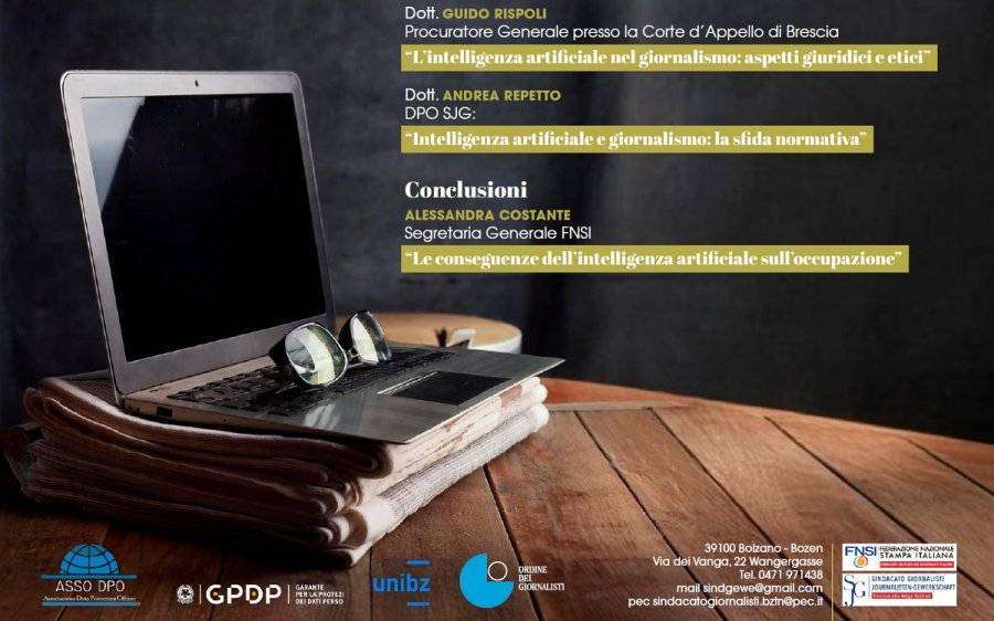 A Guido Rispoli, procuratore generale presso la Corte d’Appello di Brescia, il compito di approfondire gli aspetti giuridici ed etici dell’applicazione dell’IA nel giornalismo. Ad Andrea Repetto, data protection officer del Sindacato dei giornalisti del Trentino Alto Adige, il focus ‘Intelligenza artificiale e giornalismo: la sfida normativa’.