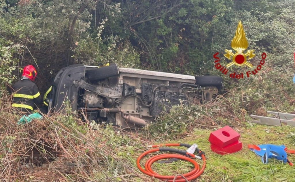 Per cause in corso di accertamento, il mezzo è uscito dalla carreggiata terminando la corsa in un dirupo particolarmente impervio.