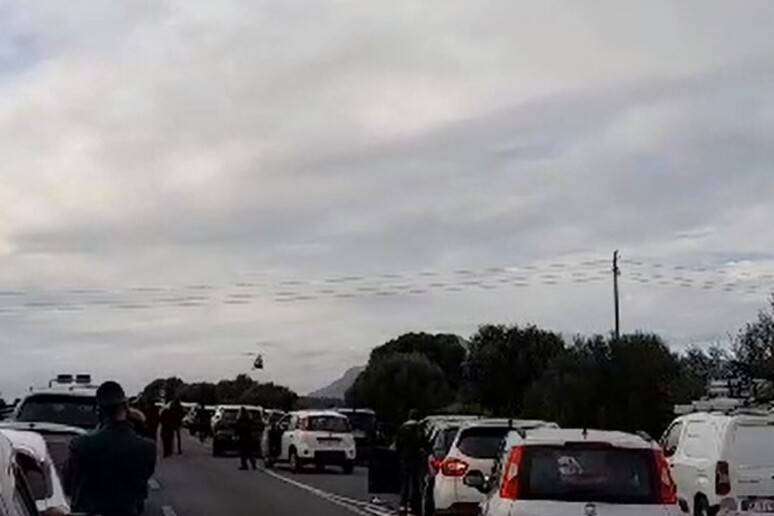 Il traffico sulla statale in direzione Iglesias è temporaneamente bloccato e si è formata una lunga coda di auto.