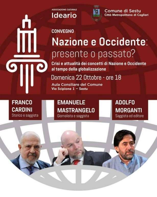 Il prossimo 22 ottobre 2023, presso l’Aula Consiliare del Comune di Sestu, Via Scipione n. 1, si terrà il Convegno “Nazione e Occidente: presente o passato?”