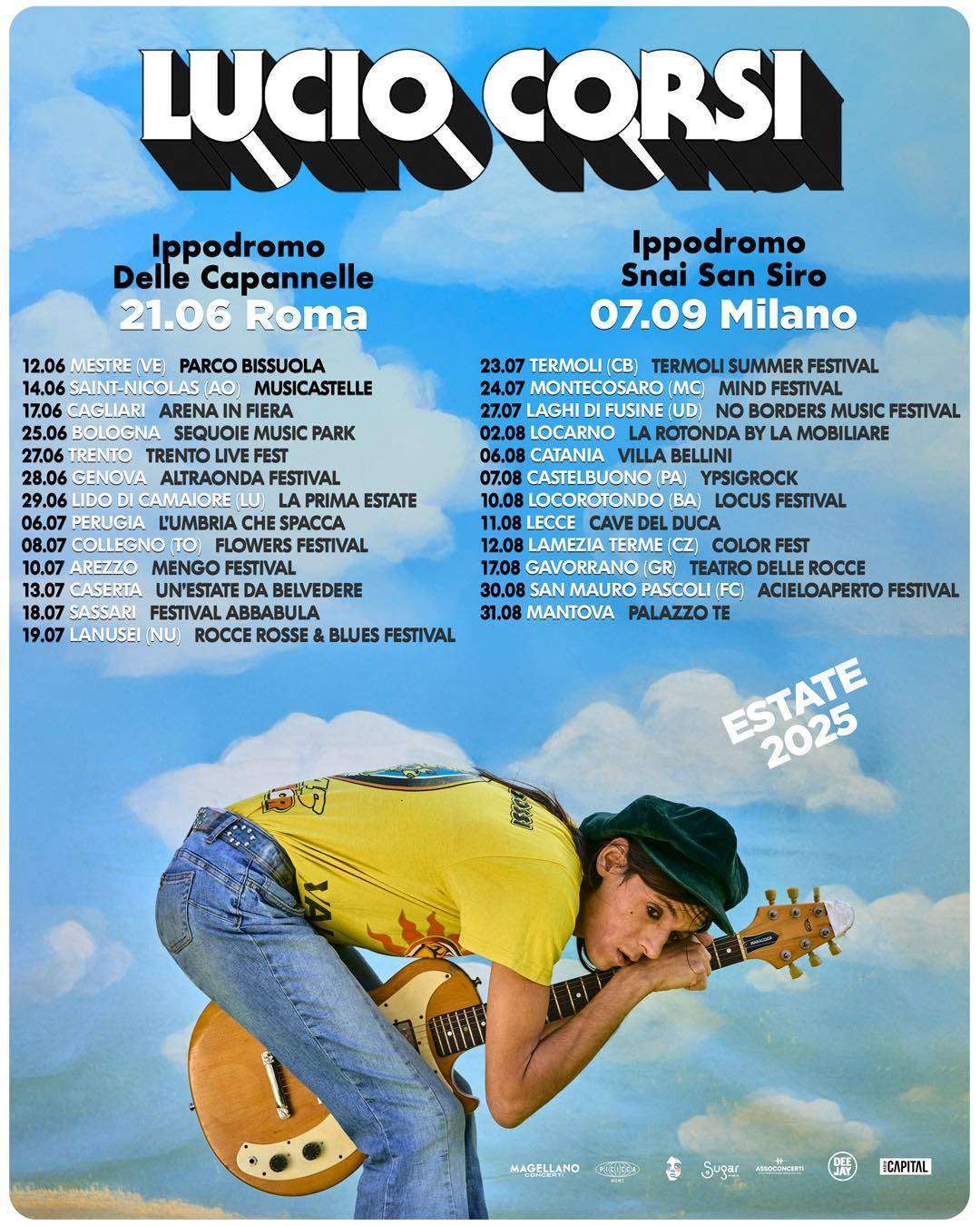 Tutta altra musica per il “Club Tour 2025”, in partenza il 10 aprile, già tutto esaurito, e le 25 tappe del tour “Estate 2025”, cui si aggiungono gli Ippodromi di Roma e Milano (21 giugno al Rock in Roma, Ippodromo delle Capannelle e 7 settembre al Milano Summer Festival, Ippodromo Snai San Siro). “Non vedo l’ora, anche perché sarò con la stessa banda con cui suono dal liceo” dice Lucio, che per gli ippodromi promette un live molto rock’n’roll in versione allargata con fiati, cori e percussioni, “ma sempre con gli stessi ragazzi con cui facciamo concerti da sempre”.