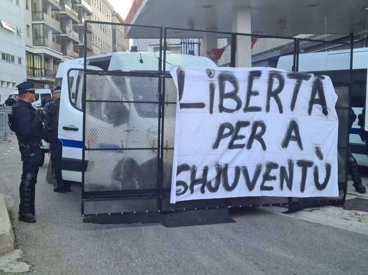 “Alla vigilia dell’arrivo del ministro della Giustizia, Gerald Darmanin in Corsica, questo processo segna ancora una volta la volontà dello Stato francese di reprimere la gioventù corso, mentre il popolo corso prevede una soluzione politica. Il posto di questi due giovani corsi e operai, che contestano i fatti che li vengono accusati, non è in un tribunale. Basta con la repressione! Sustenimu à ghjuventù!”, scrivono in un post sui social i militanti di Aiutu Paisanu.
