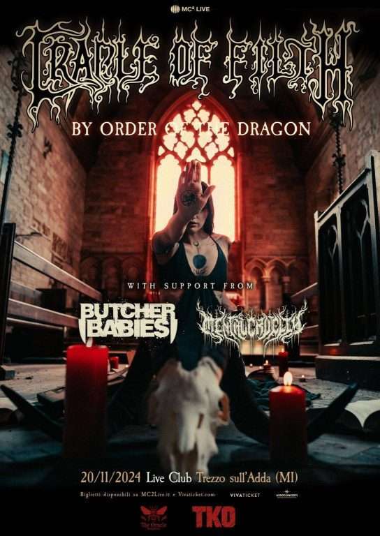Tra i protagonisti assoluti della scena symphonic black metal, i Cradle of Filth annunciano il nuovo tour “By Order Of The Dragon”, che li vedrà anche in Italia per un’unica data. La band guidata da Dani Filth sarà in concerto il prossimo 20 novembre 2024 al Live Club di Trezzo sull’Adda (Milano).