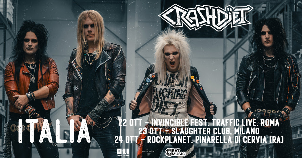 I Crashdïet , pionieri del glam e sleaze metal svedese, annunciano il loro attesissimo ritorno in Italia con tre date nell’ottobre 2026, che toccheranno Roma il 22 ottobre al Traffic Live, Milano il 23 ottobre allo Slaughter Club e Pinarella di Cervia (RA) il 24 ottobre al Rockplanet.