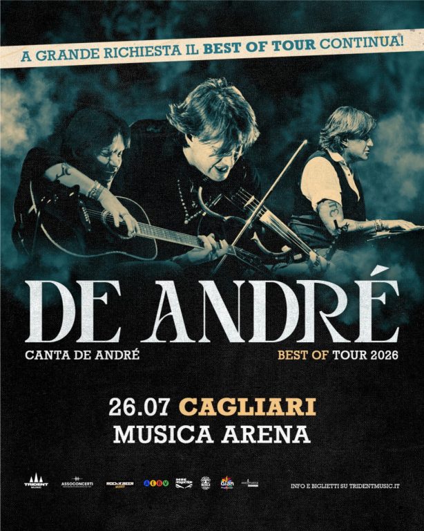 A grande richiesta si aggiungono nuove 7 date estive al “DE ANDRÉ CANTA DE ANDRÉ BEST OF TOUR 2026”, il tour di Cristiano De André che ha già emozionato migliaia di spettatori e che lo porterà a esibirsi in tutta Italia con un omaggio al padre Fabrizio e alle sue canzoni impresse nella memoria collettiva e ancora estremamente attuali: il 26 luglio sarà alla Musica Arena di Cagliari per la Fiera della Sardegna, una data organizzata da Rock’n’Beer, Associazione eventi Beneficienza Valledoria in collaborazione con Shining Production, Gian Production e Roble Factory.