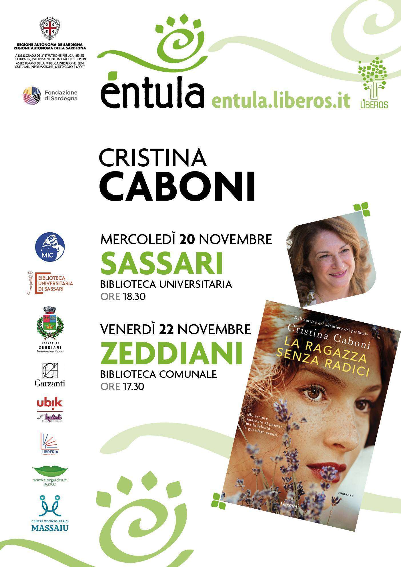 La scrittrice Cristina Caboni prosegue il suo tour con il romanzo “La ragazza senza radici”, edito da Garzanti. Ne sono protagoniste due donne, la genealogista Adeline e la viticoltrice Miranda, unite da un legame speciale che le accompagnerà durante una delicata indagine nel passato alla ricerca di risposte. Nella vicenda si innestano i mestieri delle protagoniste: quello di Adeline, tra indizi da scovare in documenti antichi e ricerche negli archivi, e quello di Miranda, che al vino ha dedicato la sua vita traendone una grande serenità. Ambientato prevalentemente in Francia, il romanzo non manca di omaggiare la Sardegna, terra spesso raccontata nelle opere di Caboni.