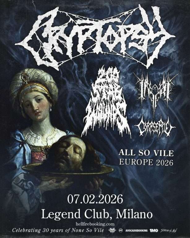 I Cryptopsy, forti della loro ultima micidiale release «An Insatiable Violence», tornano a disintegrarci per un’unica data a febbraio, pronti a celebrare con noi il trentennale del devastante «None So Vile». Ad aggravare la situazione, 200 Stab Wounds, Inferi e Corpse Pile. Mancare è fuori questione.