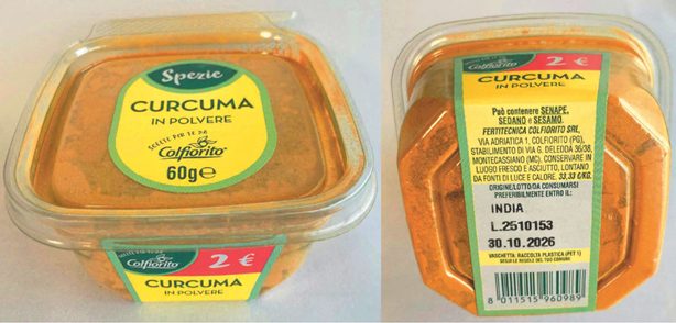 L’azienda Fertitecnica Colfiorito Srl ha confezionato la curcuma richiamata. Lo stabilimento di produzione si trova in via Grazia Deledda 32-38, a Montecassiano, in provincia di Macerata.