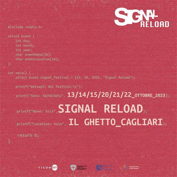 Dal 13 al 22 ottobre negli spazi del Ghetto di Cagliari (in via Santa Croce 18) si terrà la diciassettesima edizione del festival Signal Reload, la rassegna dedicata alla musica elettronica e d’avanguardia, alla sperimentazione, improvvisazione con uno sguardo trasversale sulle ricerche in campo visivo, performativo e live media. La manifestazione è curata e organizzata dall’associazione TiConZero, centro di produzione e ricerca artistica multidisciplinare sotto la guida di Daniele Ledda, è organizzata da una rodata squadra di collaboratori tra i quali Raffaele Tronci (direzione artistica) e Valentino Nioi alla produzione.