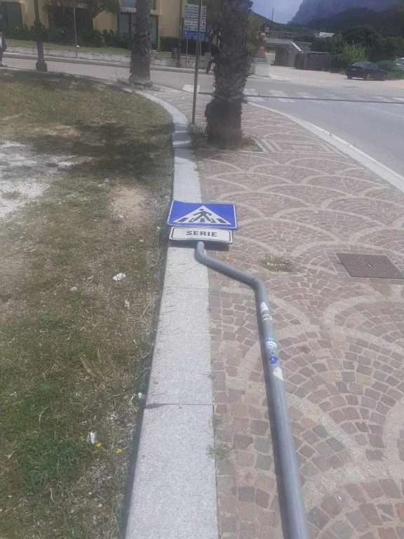 “Strano. Di solito la sosta tariffaria ed il pagamento inizia in estate a fine giugno. Ancor più strano che tale “usanza” non sia attiva nel restanti parcheggi blu del paese”…””Altresì, l’importante cartello che avvisa dell’attraversamento pedonale è stato divelto e lasciato a terra sul marciapiede (speriamo che nessuno ci inciampi)”, conclude la nota di Valentino Valentino.