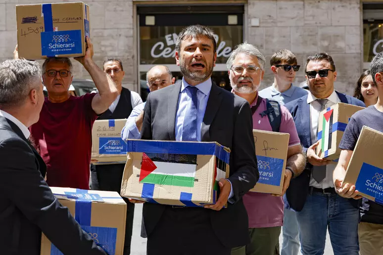 Dopo essere stato accolto in piazza Vidoni, a Roma, da diverse decine di manifestanti al grido ‘Palestina libera!’, ha dichiarato di essere fiero del fatto che “in un momento di grande disaffezione rispetto alla politica, di mancanza di partecipazione, in cui più della metà degli aventi diritto non vota siamo riusciti come associazione culturale a raccogliere quasi 80.000 firme per una legge iniziativa popolare”.
