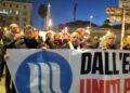 Siamo stanchi di fare i soldatini al prezzo e agli ordini di potenze straniere. Noi italiani abbiamo una grande missione, una missione che dobbiamo realizzare fino in fondo: noi siamo qui insieme a lanciare una grande mobilitazione che si concluderà a fine febbraio con un grande corteo per dire al nostro governo che deve cambiare posizione. Non è questa la posizione dell’Italia, questa è la posizione dettata da piccole ambizioni personali.