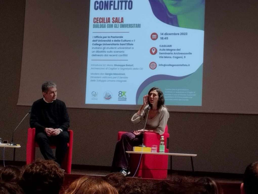“Un mondo in conflitto. Cecilia Sala dialoga con gli universitari”, questo il tema al centro dell’incontro culturale promosso dall’Ufficio diocesano per la pastorale dell’università e della cultura di Cagliari e il College universitario Sant’Efisio.