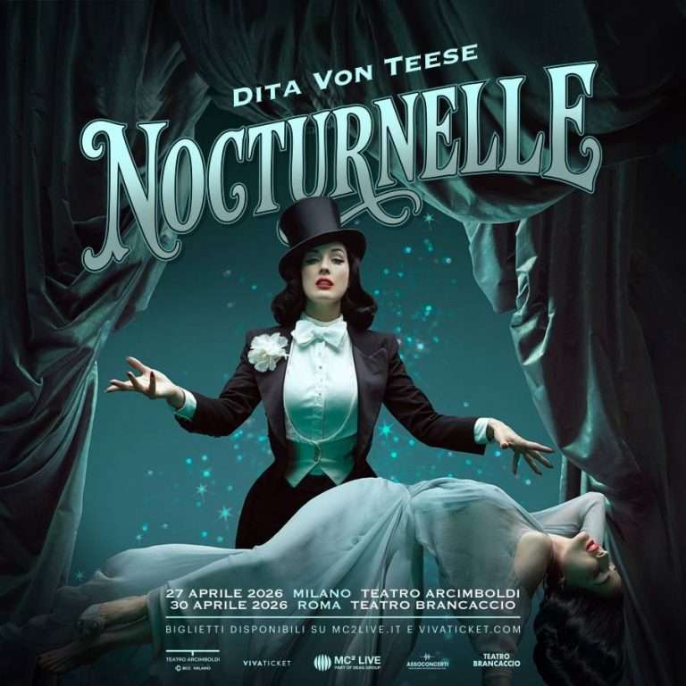 La regina del Neo Burlesque annuncia oggi le date del suo nuovo spettacolo Nocturnelle, tra queste previsti anche due appuntamenti in Italia: 27 aprile 2026 a Milano (Teatro Arcimboldi) e 30 aprile 2026 a Roma (Teatro Brancaccio).