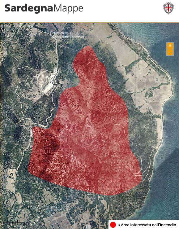 Le forti raffiche di vento di maestrale hanno alimentato le fiamme, che si sono propagate velocemente in tutta l’area, fino a raggiungere le zone di Sa Punta e di Cala Zavorra a Perd’e Sali.