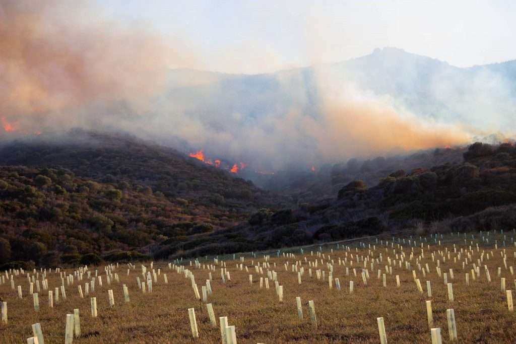 L’incendio ha interessato anche le colline di Sa Punta. Fortunatamente, le fiamme si sono fermate ai margini dell’area interessata dal progetto di riforestazione “ForestaSa”.