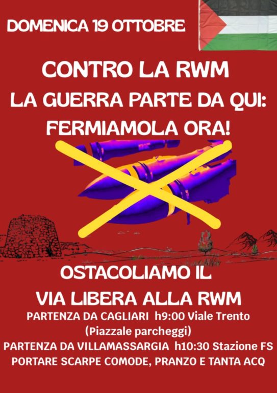 “Dal 2010 la società RWM si è installata nel Sulcis per produrre esplosivi ed ordigni da guerra, per conto della multinazionale Rheinmetall, con sede in Germania. Nel 2021 RWM ha stretto un accordo con la società israeliana Uvision, per produrre su licenza i droni killer della serie Hero. Il loro mortifero business alimenta i peggiori teatri di guerra del pianeta: Palestina, Yemen, Ucraina, Kurdistan …