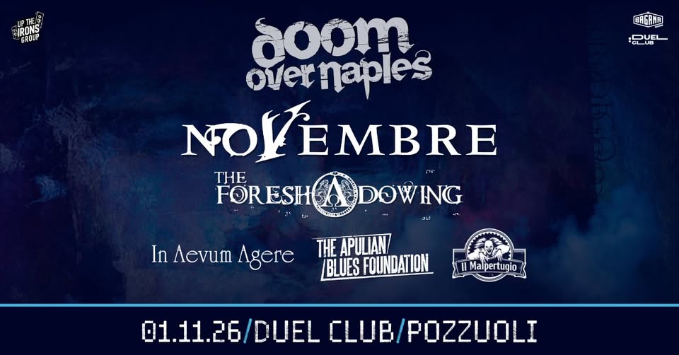 Con loro The Foreshadowing, gothic/doom da Roma, In Aevum Agere, power/doom da Napoli, The Apulian Blues Foundation, stoner/blues/doom da Bari e Il Malpertugio, stoner/rock da Caserta.