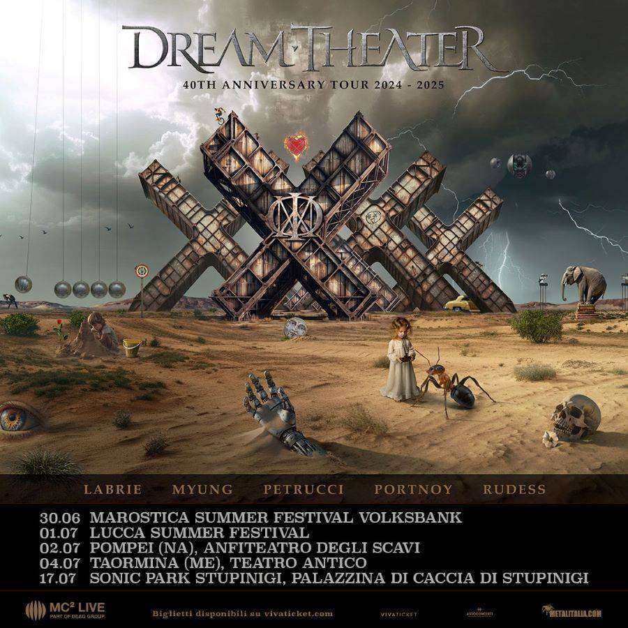 Dream Theater si esibiranno a Marostica Summer Festival Volksbank (30 giugno), a Lucca Summer Festival (1° luglio), all’Anfiteatro degli Scavi di Pompei (2 luglio), al Teatro Antico di Taormina (4 luglio) e infine al Sonic Park Stupinigi (17 luglio).