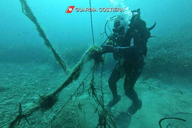 Circa duecento metri lineari di reti da pesca “fantasma” sono stati recuperati nella zona B dell’Area Marina Protetta di Tavolara – Punta Coda Cavallo, nel punto di immersione di Secca di Punta Arresto nell’isola di Molara, dai sub della Guardia Costiera di Cagliari coordinati dalla direzione marittima di Olbia.