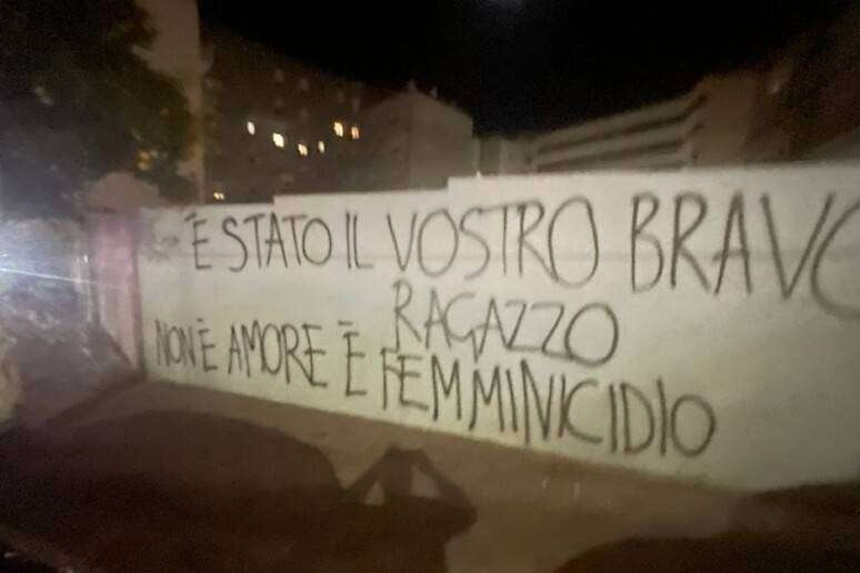 Lettere maiuscole, impresse con lo spray: “È stato il vostro bravo ragazzo, non è amore, è femminicidio”.