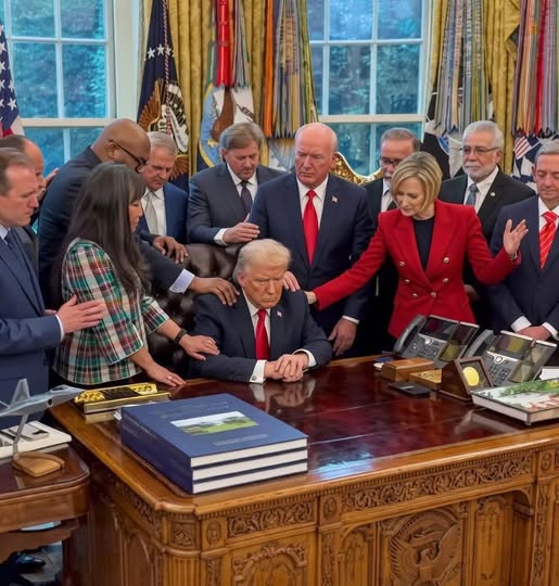 I leader evangelici riuniti in preghiera per il “la fine positiva della guerra”, questa l’immagine che ha sconvolto il mondo, al centro del gruppo di disadattati il presidente del regime teocratico Ir… a no gli Stati Uniti di Donald Trump.