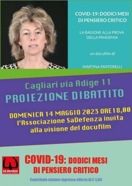 Domenica 14 maggio a partire dalle ore 18 in via Adige 11 a Cagliari verrà proiettato il docufilm “Covid 19: dodici mesi di pensiero critico”, della giornalista Martina Pastorelli.