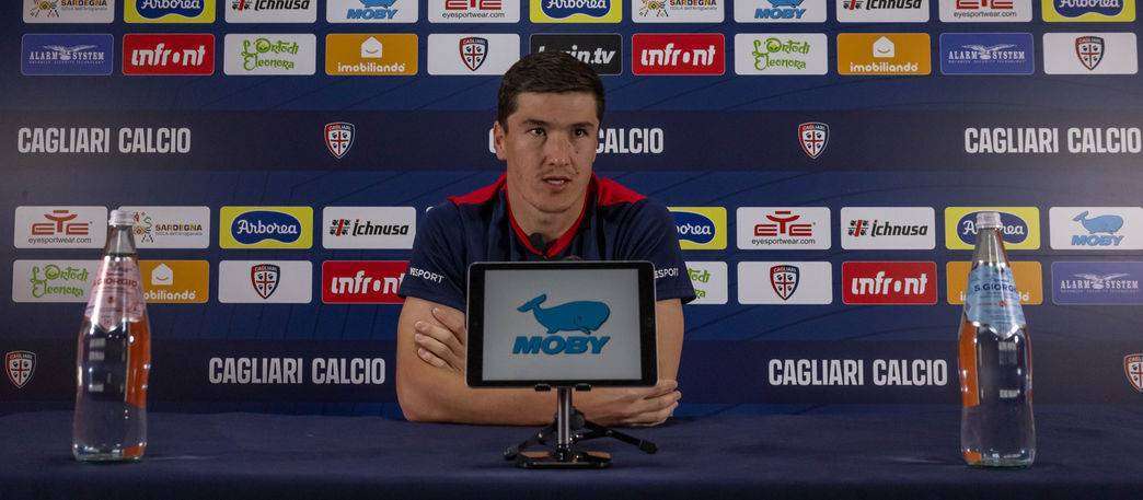 Presentazione nel ritiro valdostano per Eldor Shomurodov, attaccante uzbeko arrivato in rossoblù alla corte di Claudio Ranieri.