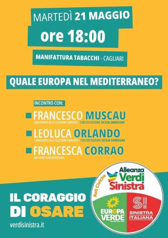 “Quale Europa nel Mediterraneo?” è il titolo dell’evento elettorale che si svolgerà martedì 21 maggio, alle ore 18, negli spazi della ex Manifattura Tabacchi a Cagliari.