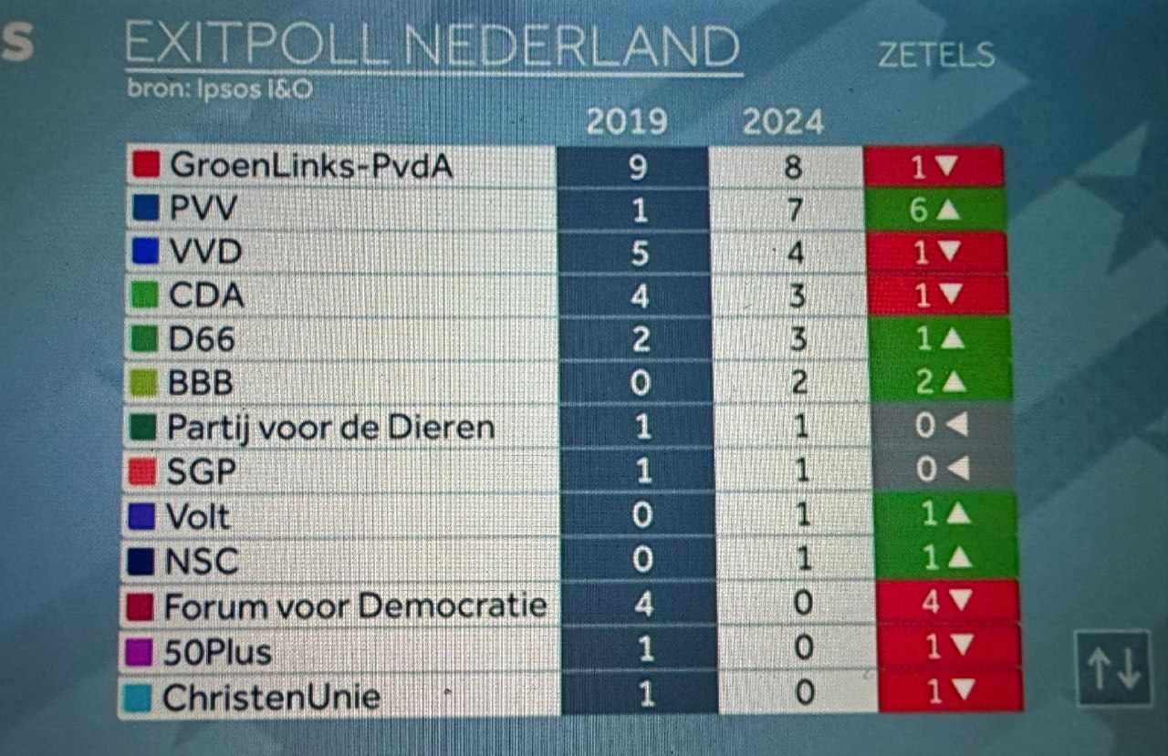 Stando ai primi exit poll, infatti, l’alleanza europeista otterrebbe 8 seggi rispetto ai 7 assegnati al Partito per la Libertà di Wilders (ID). I primi Exit poll sembrano quindi andare in controtendenza rispetto ai sondaggi della vigilia. Per Wilders, che nel 2019 non ottenne alcun seggio, si tratta in ogni caso di una netta affermazione rispetto a cinque anni fa. Affluenza finale al 47%: la migliore dalle elezioni europee del 1979.
