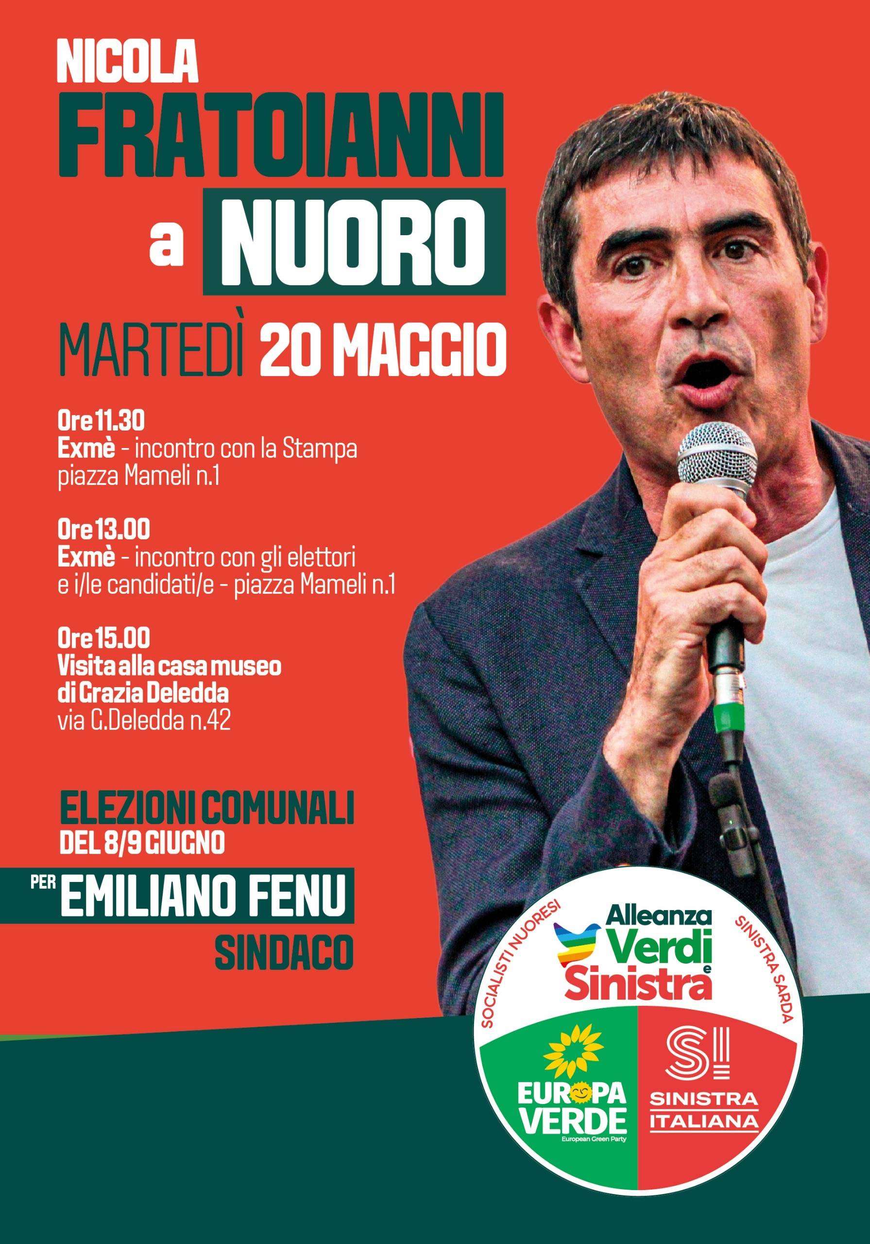 Martedì 20 maggio Nicola Fratoianni sarà a Nuoro per sostenere la lista dell’Alleanza Verdi Sinistra italiana, il candidato a sindaco del Campo Largo Emiliano Fenu e la campagna per i 5 sì ai referendum dell’8/9 giugno.