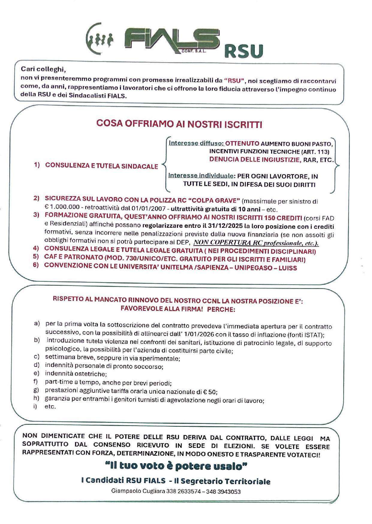 vi chiediamo per il 14- 15-16 Aprile 2025 di : VOTARE E FAR VOTARE LA LISTA FIALS ESPRIMENDO DUE PREFERENZE SULLA SCHEDA DI VOTO