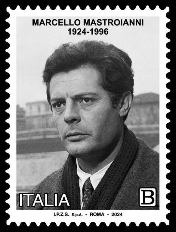 Poste Italiane comunica che oggi 28 settembre 2024 viene emesso dal Ministero delle Imprese e del Made in Italy un francobollo ordinario appartenente alla serie tematica “le Eccellenze italiane dello spettacolo” dedicato a Marcello Mastroianni, nel centenario dalla nascita, relativo al valore della tariffa B pari a 1.25€.