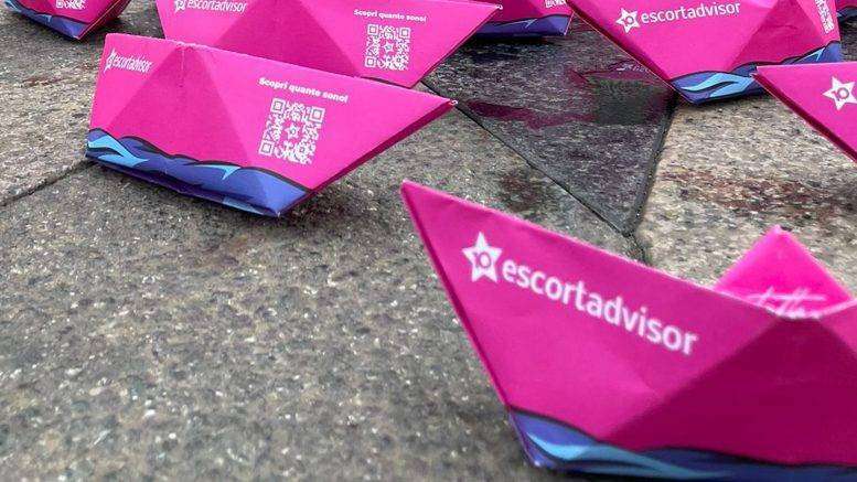Escort Advisor ha realizzato la campagna nelle città di Torino, Brescia, Padova, Rimini e Napoli, tappezzandole di barchette di carta color magenta a rappresentare il numero di escort presenti nel paese, con lo slogan: Un mare di escort: ci sono tutte ma con le recensioni.