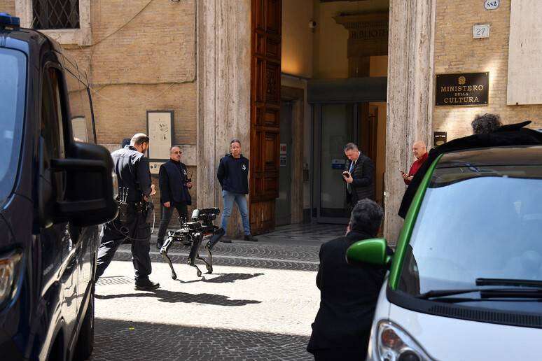 Al Mic, nel corso dell’allarme bomba, è entrato Saetta il primo cane robot dell’Arma dei Carabinieri.