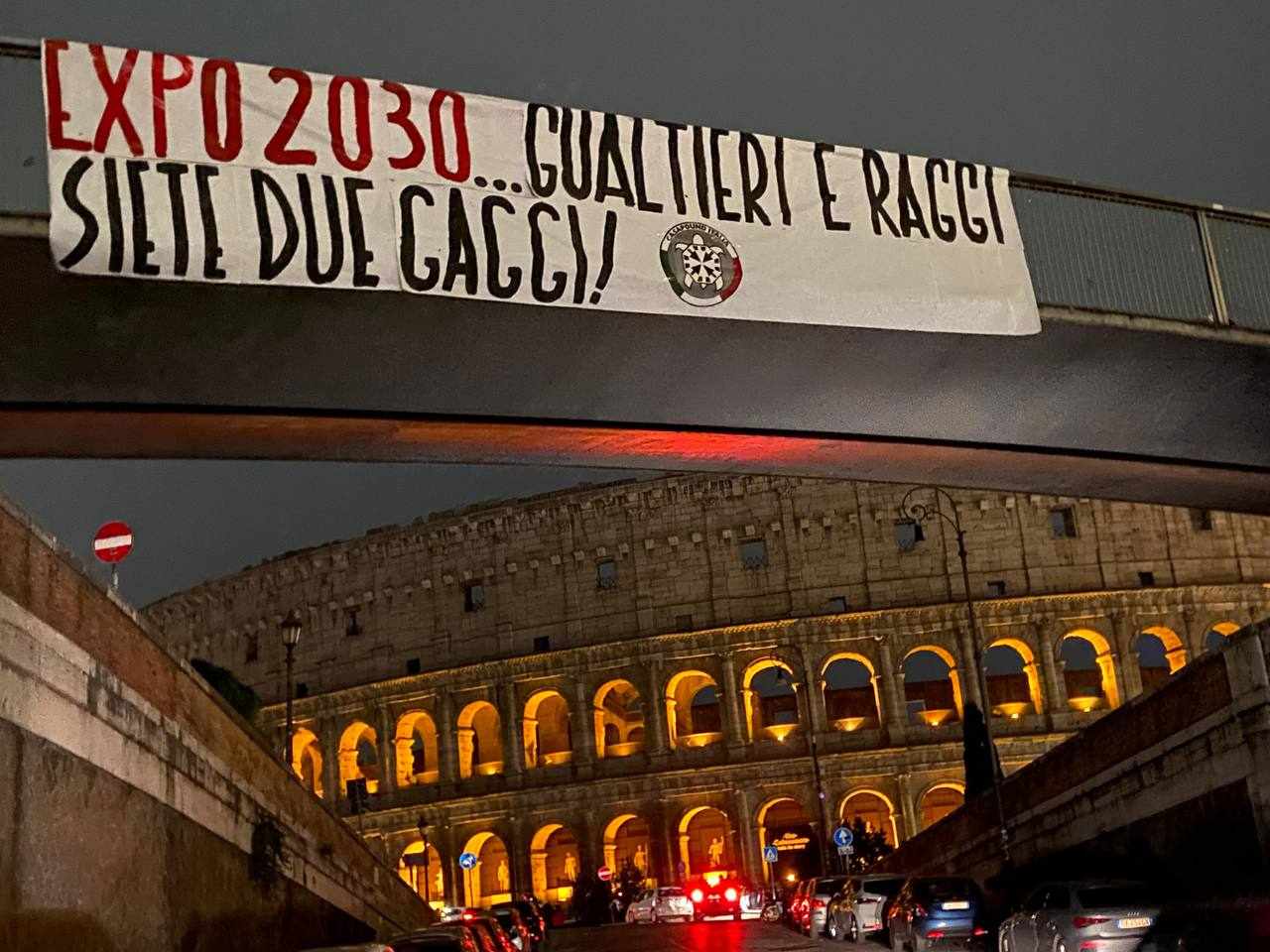 “Expo2030… Raggi e Gualtieri siete due gaggi” è il testo ironico degli striscioni affissi da CasaPound dopo il fallimento nell’assegnazione di Expo2030, che si terrà alla fine a Riad. “Questo è il risultato dell’incapacità della giunta Raggi prima e di quella Gualtieri ora.