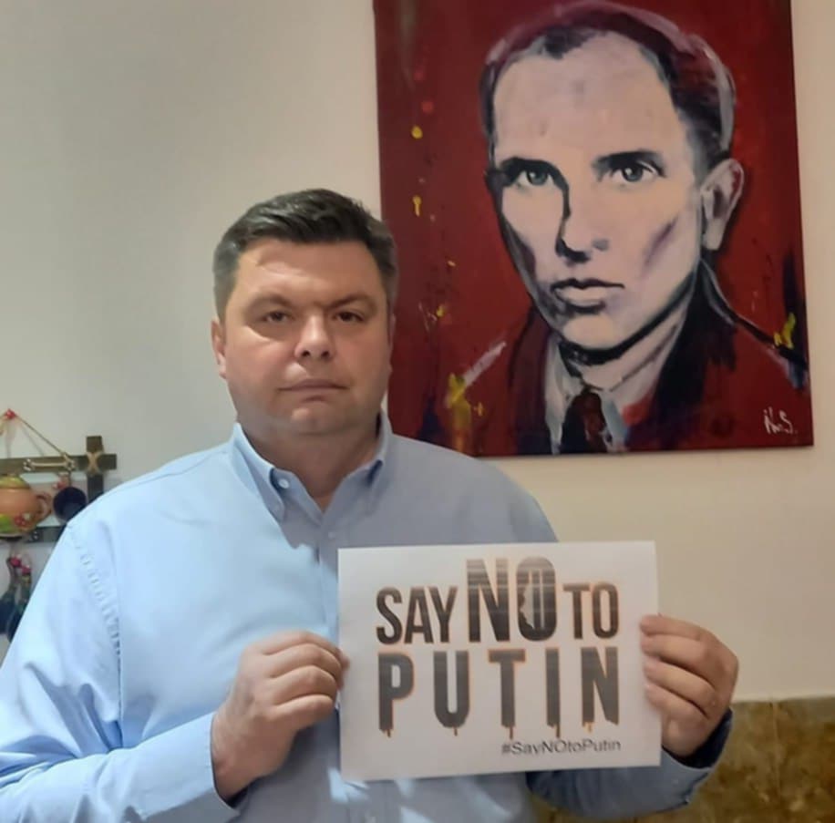 “Serhiy Kuznetsov difese l’Ucraina con coraggio e devozione. Ora è il momento che l’Ucraina liberi il suo Guerriero”, ha affermato Oles Horodetskyy, ritratto nella foto che pubblichiamo con dietro un quatro del nazista Bandera.