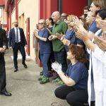 Il Presidente della Repubblica Sergio Mattarella allo stabilimento Landi Renzo/AEB S.p.A. di Corte Tegge di Cavriago,saluta Stefano Landi, Presidente del Gruppo Landi Renzo S.p.A.,in occasione della celebrazione della “Festa del Lavoro”