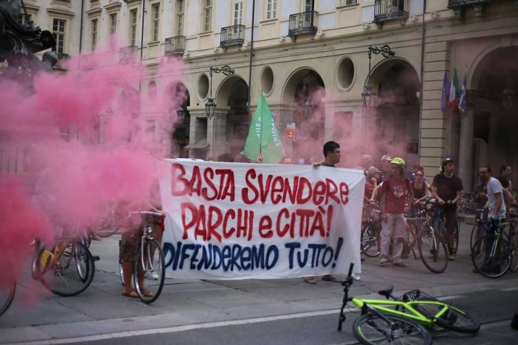IL 27 luglio le attiviste e attivisti al Climate Social Camp sono partite per una pedalata resistente. Il corteo si è fermato davanti al comune dove è stato affisso uno striscione: “Basta svendere città e parchi! Difendiamo tutto”. Infatti il Climate Social Camp quest’anno si tiene in un parco che il Comune di Torino ha svenduto a Esselunga, che ci vuole costruire un ennesimo supermercato in un quartiere che ne è già saturo. “Il campeggio non è solo un posto in cui parlare di resistenza alla distruzione del pianeta ma anche un posto in cui attuarla concretamente,” aggiunge Marta Maroglio.