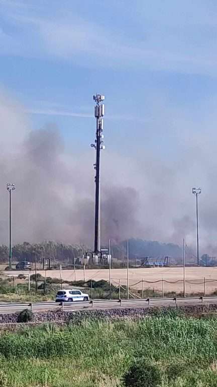 Un incendio si è sviluppato nel pomeriggio all’ingresso di Elmas nella zona dello stadio.