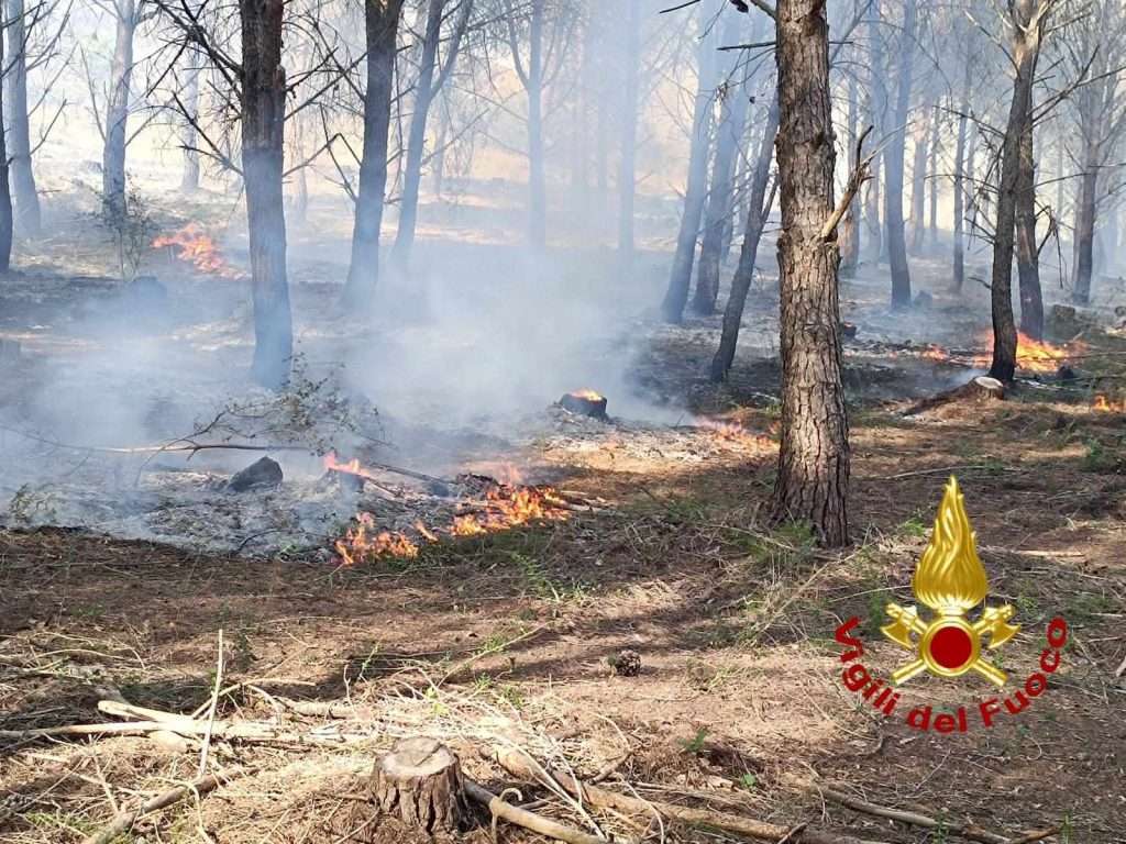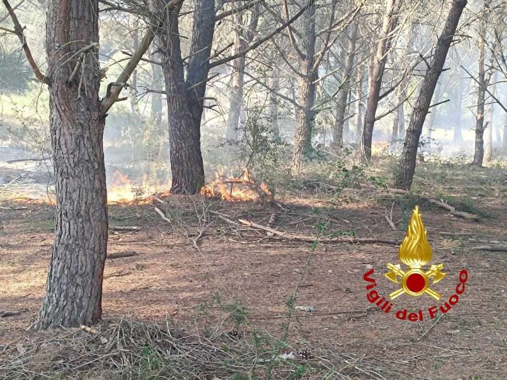 Le fiamme hanno interessato una pineta ed un terreno adiacente coltivato ad avena.