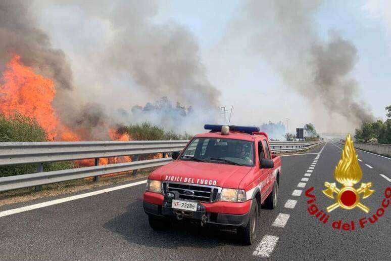 La principale arteria stradale che collega il nord col sud della Sardegna è stata chiusa per qualche ora a causa delle alte fiamme, che sono arrivate a bordo carreggiata, e del fumo.