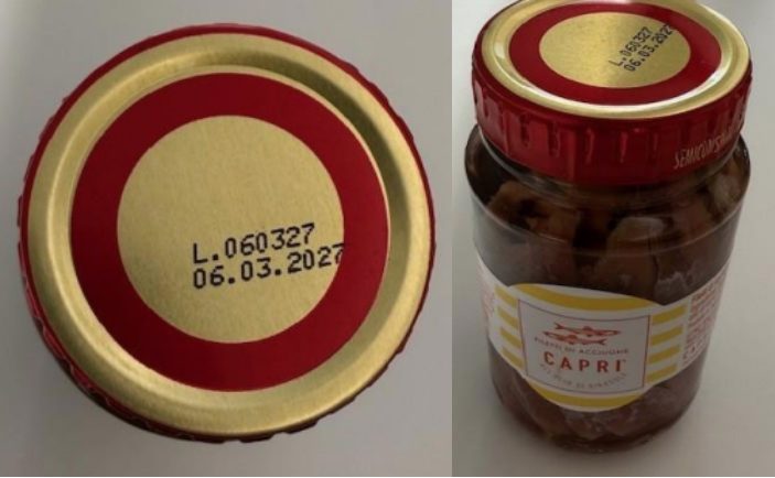 Il Ministero della Salute ha segnalato il richiamo cautelativo da parte del produttore di un lotto di filetti di acciughe all’olio di girasole a marchio Capri. Il motivo indicato sull’avviso di richiamo è la possibile presenza di istamina oltre i limiti di legge. Il prodotto in questione è venduto in vasetti da 140 grammi, con il numero di lotto L. 060327 e il termine minimo di conservazione (TMC) 06/03/2027.