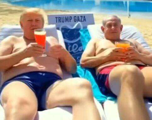 In sottofondo, un cafonissimo pezzo dance vagamente orientaleggiante commenta: «Donald Trump has set you free/ Bringing the light for all to see/ No more troubles, no more fear/ Trump Gaza is finally here». Ed eccolo Trump che prima balla con un’odalisca da Mille e una notte e, alla fine, si rilassa con un drink a bordo piscina in compagnia del premier israeliano Benjamin Netanyahu. L’uomo che, in risposta al 7 ottobre, per punire Hamas ha raso al suolo la Striscia.