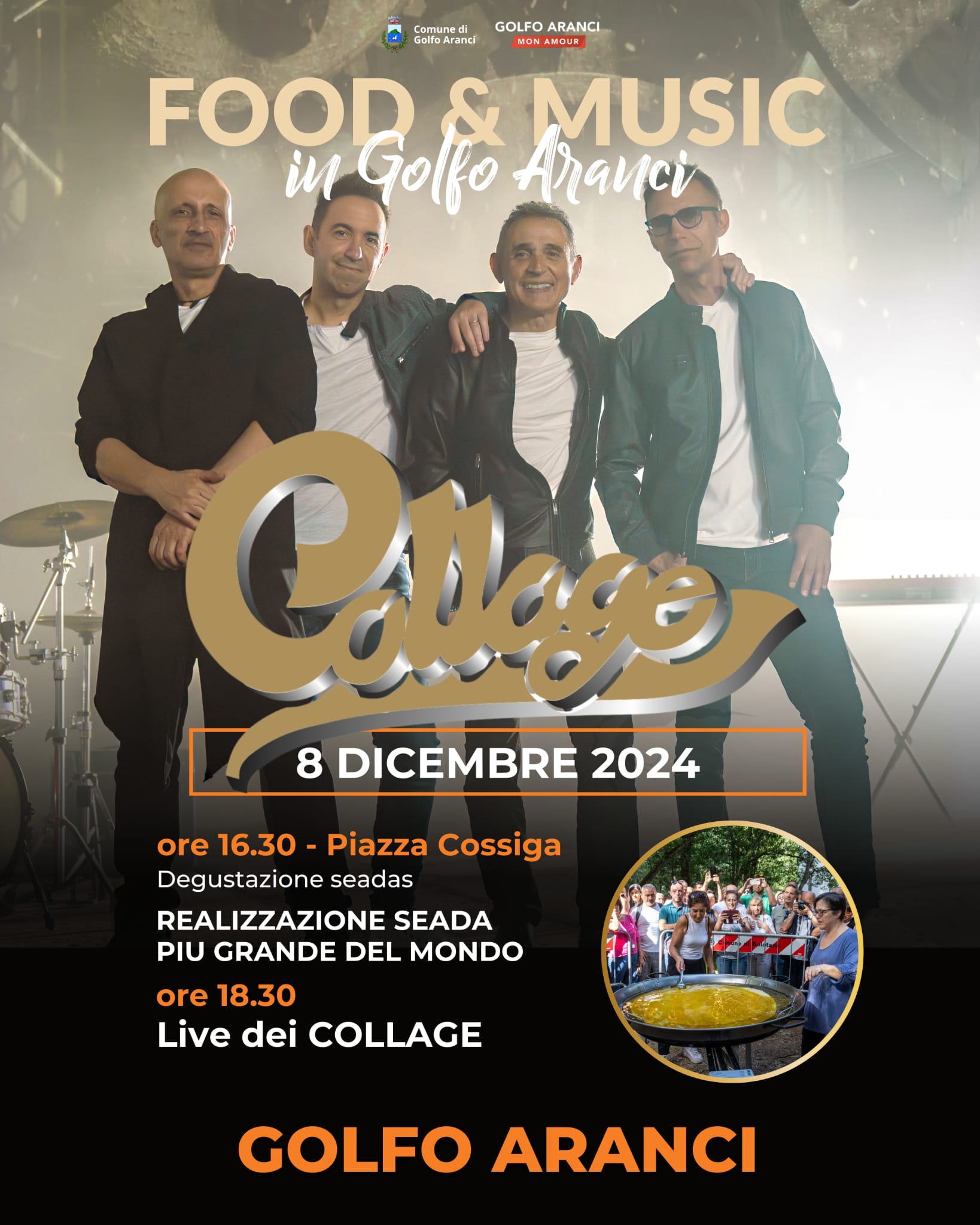 Luci puntate sui Collage, che il prossimo 8 dicembre saranno protagonisti del Food & Music in Golfo Aranci in Piazza Cossiga, ormai teatro ideale di tutti gli eventi cittadini, con l’atteso concerto delle ore 18,00.